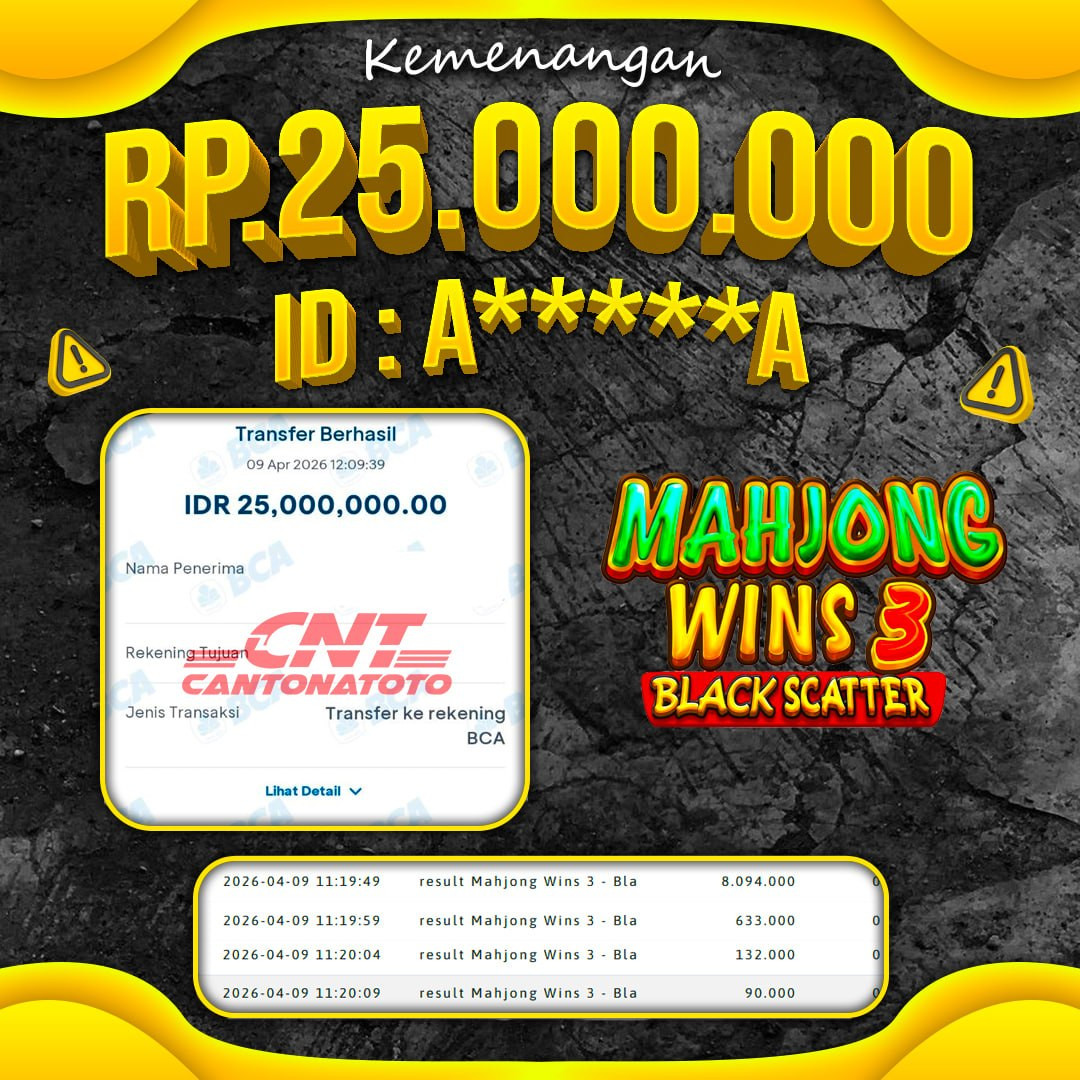 ????✨ SELAMAT UNTUK MEMBER KAMI ATAS KEMENANGAN HARI INI! BUKTI NYATA CUAN BUKAN SEKEDAR CERITA! MAIN TENANG, WD DATANG TANPA HALANGAN! TERIMA KASIH SUDAH PERCAYA BERSAMA KAMI ???? YANG BELUM IKUT, SAATNYA MENYUSUL! ❤️SEL4M4T KEPADA M3MB3R S3TIA CANTONATOTO ????TANGGAL : 09 APRIL 2026 ????USER ID : A******A ????B0 : CNTT ????M3N4NG : MAHJONG WINS 3 BLACK SCATTER ????RP. 25.000.000
