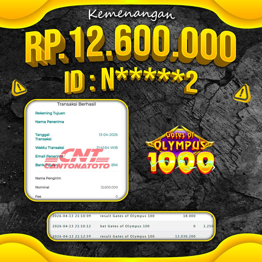 ???? JACKPOT HARI INI MILIK MEMBER KESAYANGAN KAMI! BUKTI MAIN DI TEMPAT YANG TEPAT HASILNYA BERLIPAT! TERIMA KASIH ATAS KEPERCAYAANNYA ???? YUK GAS SEKARANG — JANGAN SAMPAI KETINGGALAN MOMEN CUAN! ❤️SEL4M4T KEPADA M3MB3R S3TIA CANTONATOTO ????TANGGAL : 13 APRIL 2026 ????USER ID : N*****2 ????B0 : CNTT ????M3N4NG : Gates of Olympus 1000 ????RP. 12.600.000